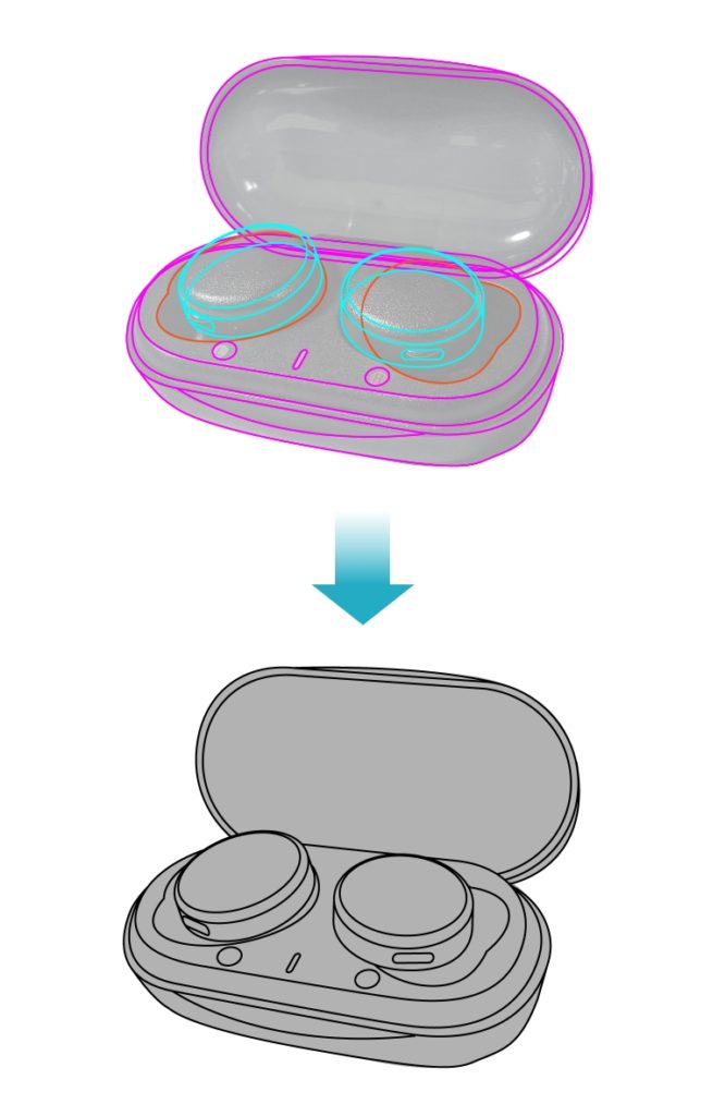 今回は、こちらのワイヤレスイヤホンをイラストに描き起こしていきます。参考にする画像は「その商品がどういうものか」がパッと見てわかる角度や構図のものを選びましょう。画像が歪んでいたらある程度補正もしてあげます。
