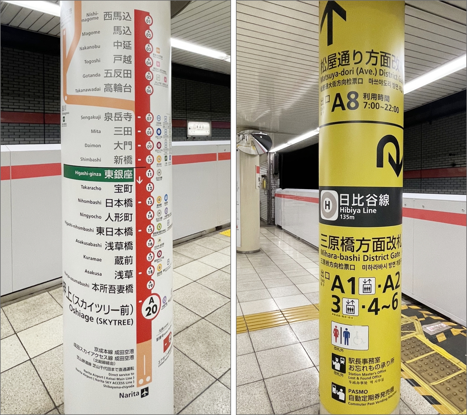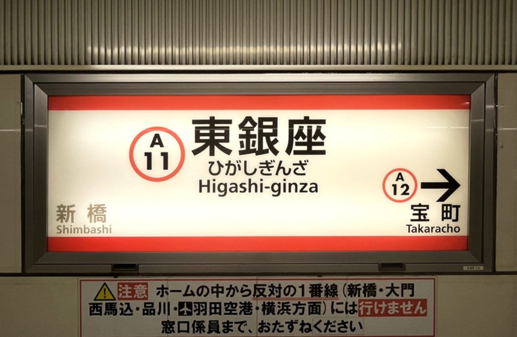 せっかくなので、当社の最寄り駅・都営浅草線「東銀座」駅でいろいろ撮ってみました! この組み合わせは、都営線のほか、東京メトロ、京急などでも使われています。